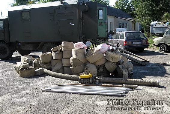 “Під час проведеного слідчим відділенням огляду місця події вилучено автомобілі, більше 30-ти пожежних рукавів, дві мотопомпи, 11 сачків, каністри з дизельним пальним та інші засоби”, – повідомив начальникМаневицького РВ УМВС України у Волинській області Ігор Ісаков.