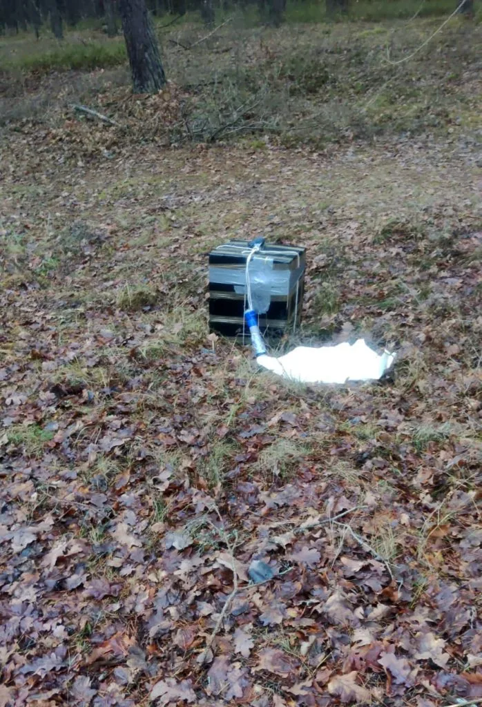 Пакунок був обмотаний чорною поліетиленовою плівкою, до нього кріпився канат із залишками повітряної кулі. Всередині знаходилося 1500 пачок цигарок марки «Мінськ» з акцизними марками республіки білорусь, а також два GPS-пристрої: один із SIM-карткою білоруського оператора зв’язку, інший — із SIM-карткою оператора Республіки Польща.
