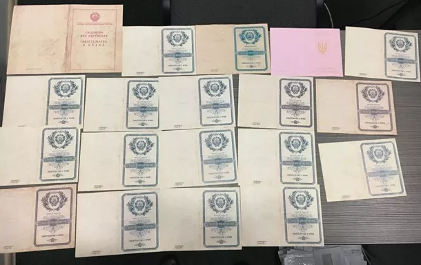 Під час обшуків в офісах і за місцем проживання зловмисників оперативники вилучили майже 100 пакетів документів для оформлення іноземного громадянства. Зокрема, були виявлені фальшиві печатки органів влади СРСР та України, паспорти громадян інших країн, незаповнені бланки свідоцтв про шлюб і створення сім’ї.
