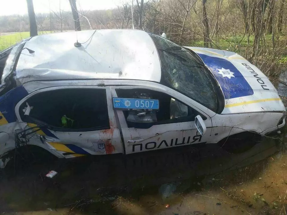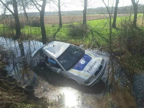 9-го квітня близько 15:30 неподалік села Гать Берегівського району Закарпатської області службове авто поліцейських не вписалося в поворот і вилетіло в кювет.