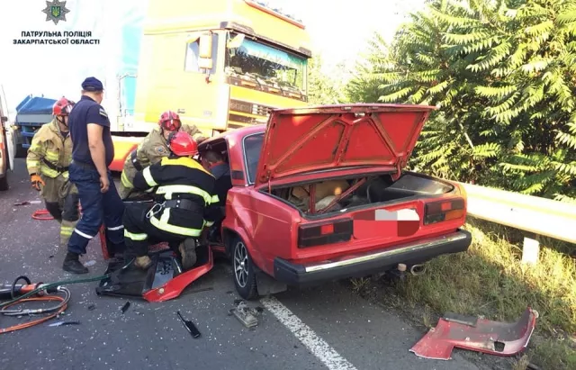 “У результаті зіткнення вантажівки DAF, під керуванням 57-річного мешканця Великоберезнянщини, мікроавтобуса Mersedes Sprinter, за кермом якого перебував 38-річний хустянин, та легковика “ВАЗ-2107″, під керуванням 40-річного мешканця села Середнє Ужгородського району, на місці автопригоди загинула 41-річна пасажирка легковика”, – повідомляє прес-служба поліції Закарпатської області.