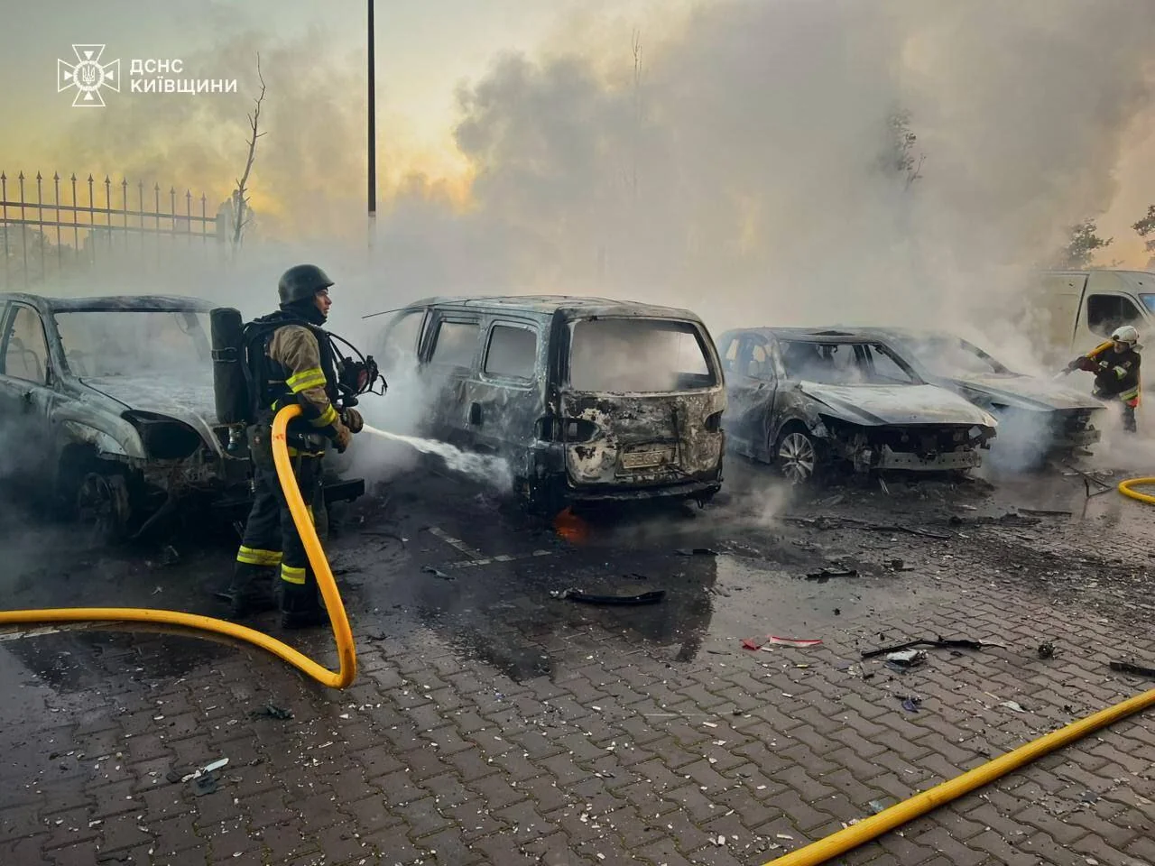 У Київській області внаслідок комбінованої атаки дронами та ракетами виникли пожежі, зокрема у приватному будинку, а також загорілися 5 автомобілів.
