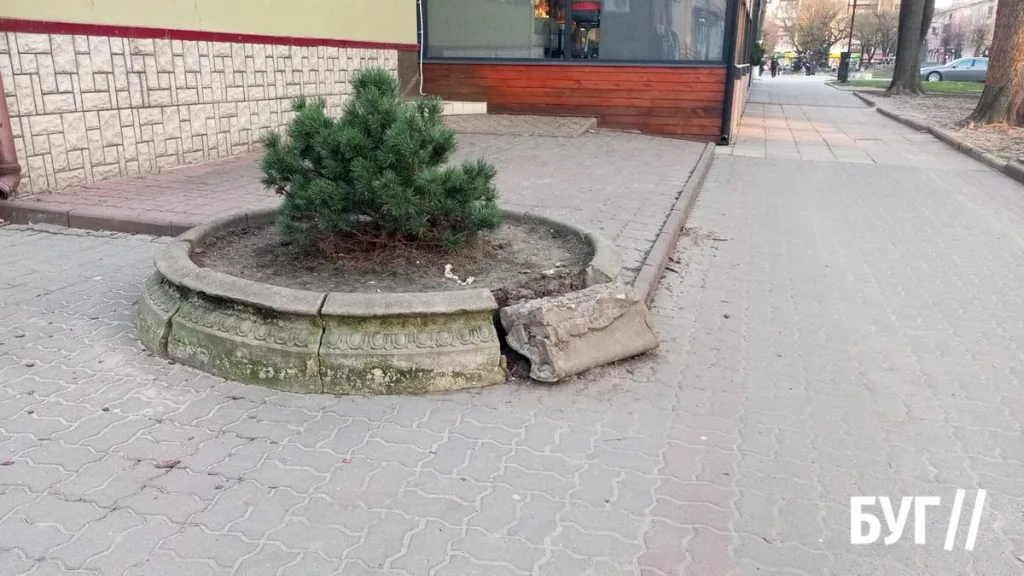 Це місце розташоване у самому центрі міста, де щодня проходить багато людей. Пошкоджена клумба свідчить про черговий випадок вандалізму.