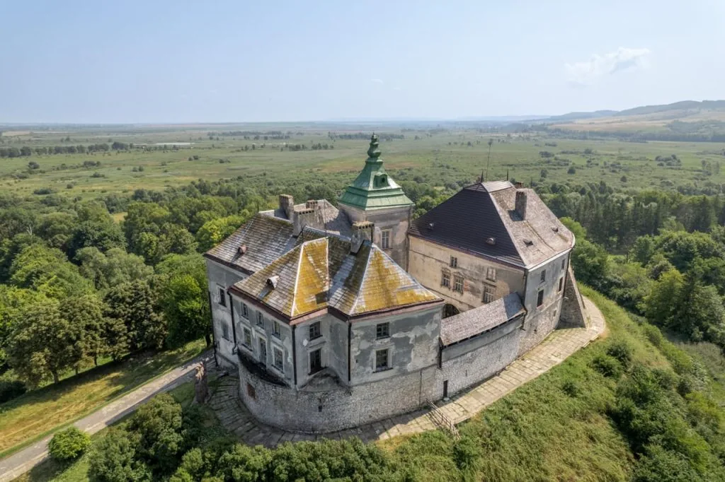 Серед мальовничих пагорбів Львівщини височіє замок XVI століття, оточений водоймою з трьох боків. Його масивні мури й вежі поєднуються з витонченою архітектурою, створюючи враження, ніби фортеця виросла просто зі скелі.