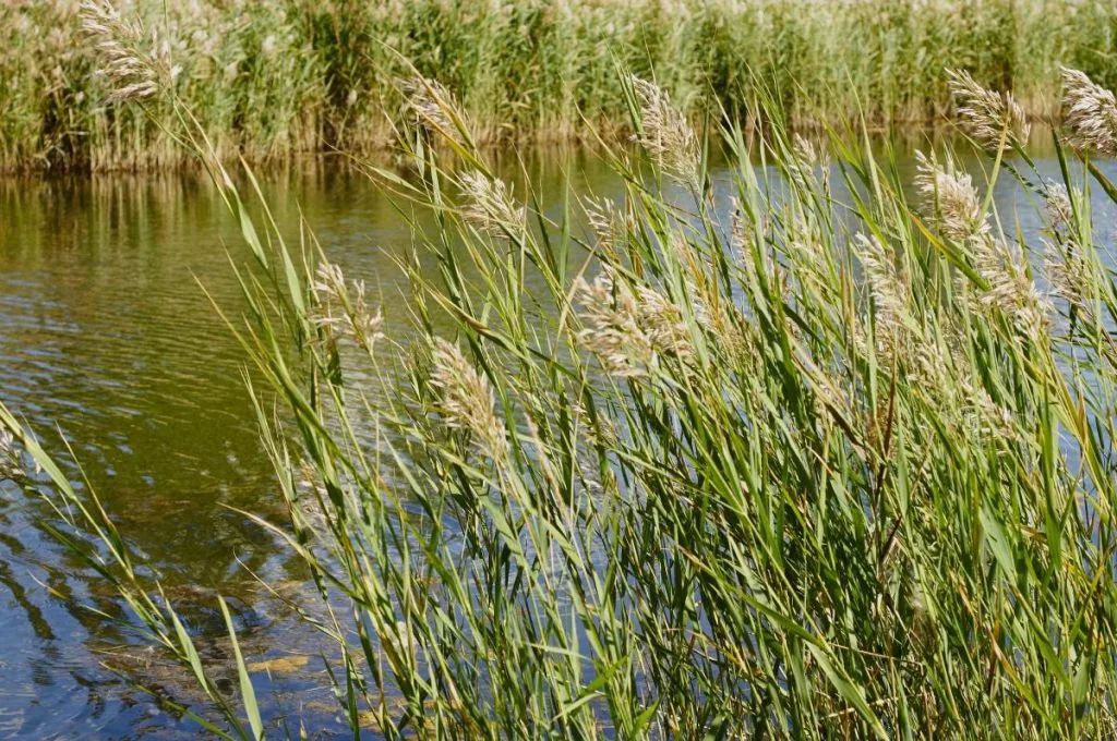 Останнім обговоримо очерет – ще один дуже поширений прибережний вид з високими прямими стеблами. Чому плутають очерет і рогіз – достеменно невідомо, але це зовсім різні види.