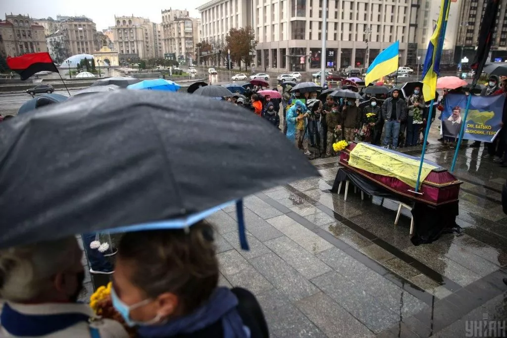 На Майдані Незалежності в Києві відбулась прощальна церемонія з 49-річним ветераном АТО Миколою Микитенком, який у ніч на 11-го жовтня підпалив себе на знак протесту політики чинного керівництва держави. Чоловік підпалив себе, бо не погоджувався з політикою Володимира Зеленського.