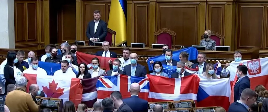 Депутати розгорнули 11 прапорів держав та інституцій, яким дякували. Про подію розповідають на офіційній сторінці президента у фейсбуці.