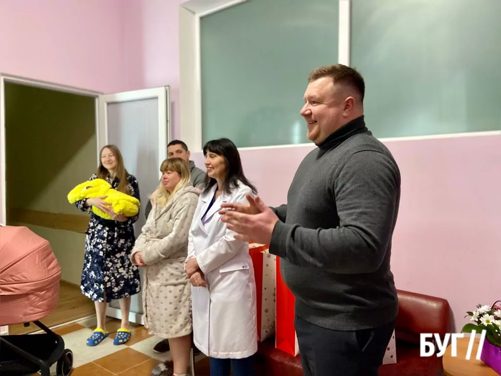 Міський голова Борис Карпус також привітав батьків діток та вручив подарунки і квіти. Перший хлопчик отримав сіренький візочок від місцевого підприємця Євгенія Дударчука, дівчинка – рожевий.
