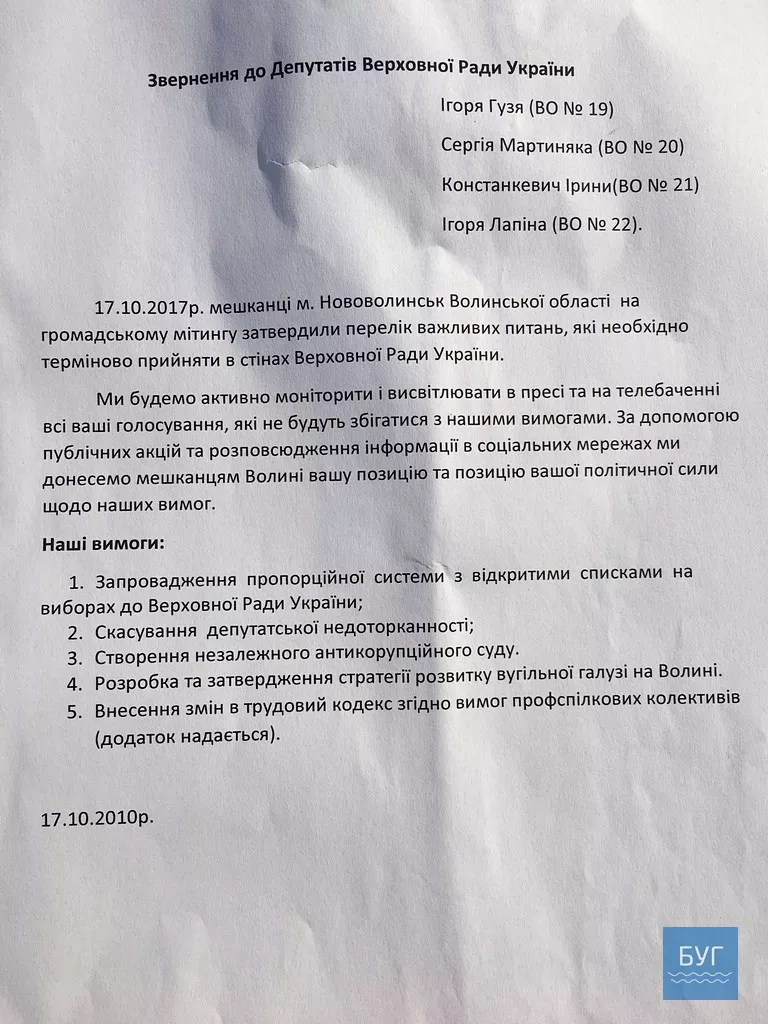 Нововолинці приєднуються до основних вимог протесту щодо запровадження пропорційної системи з відкритими списками на виборах до парламенту, скасування депутатської недоторканності та створення незалежного антикорупційного суду.
