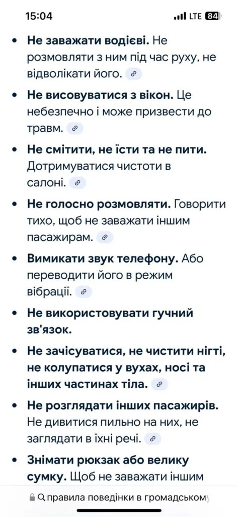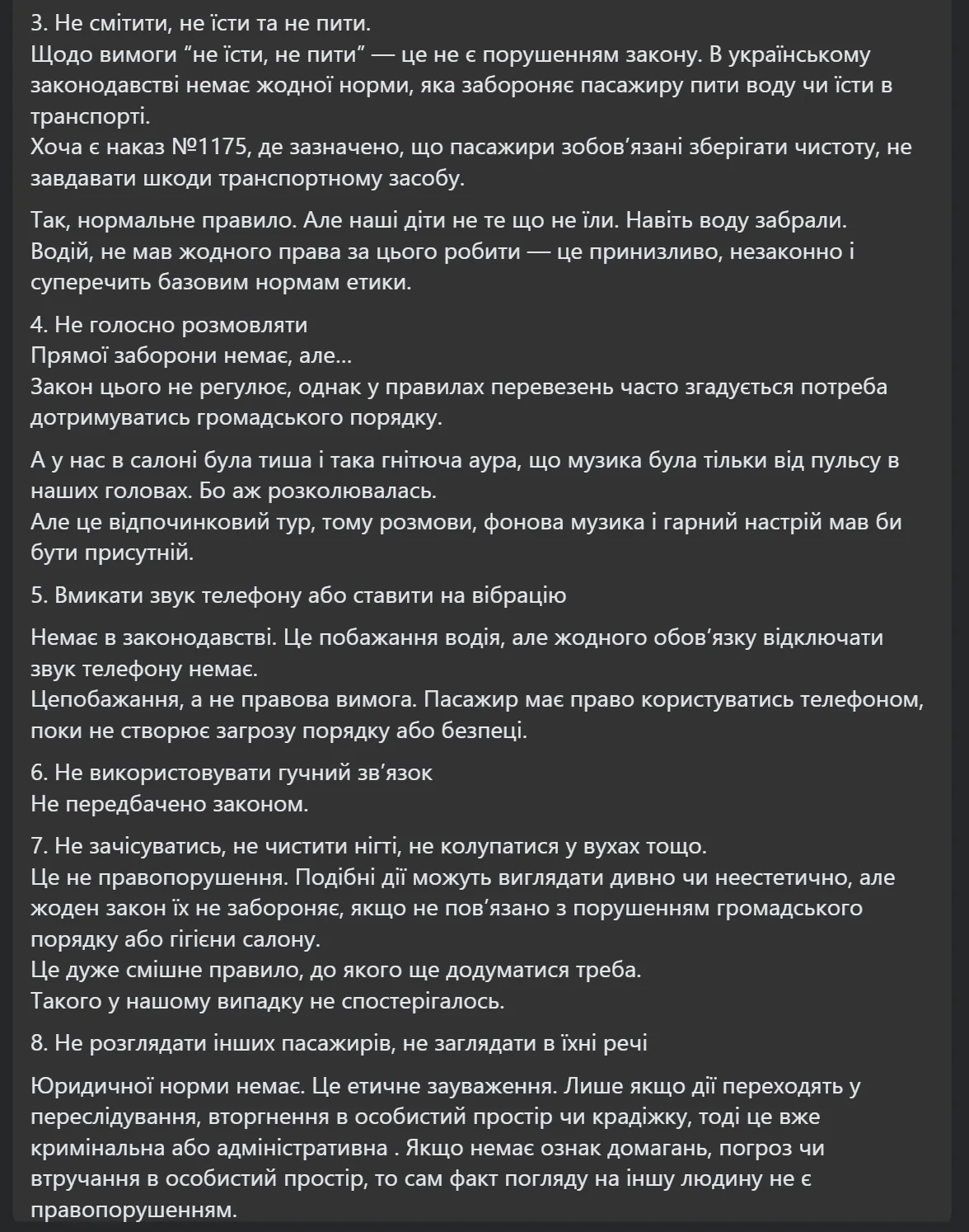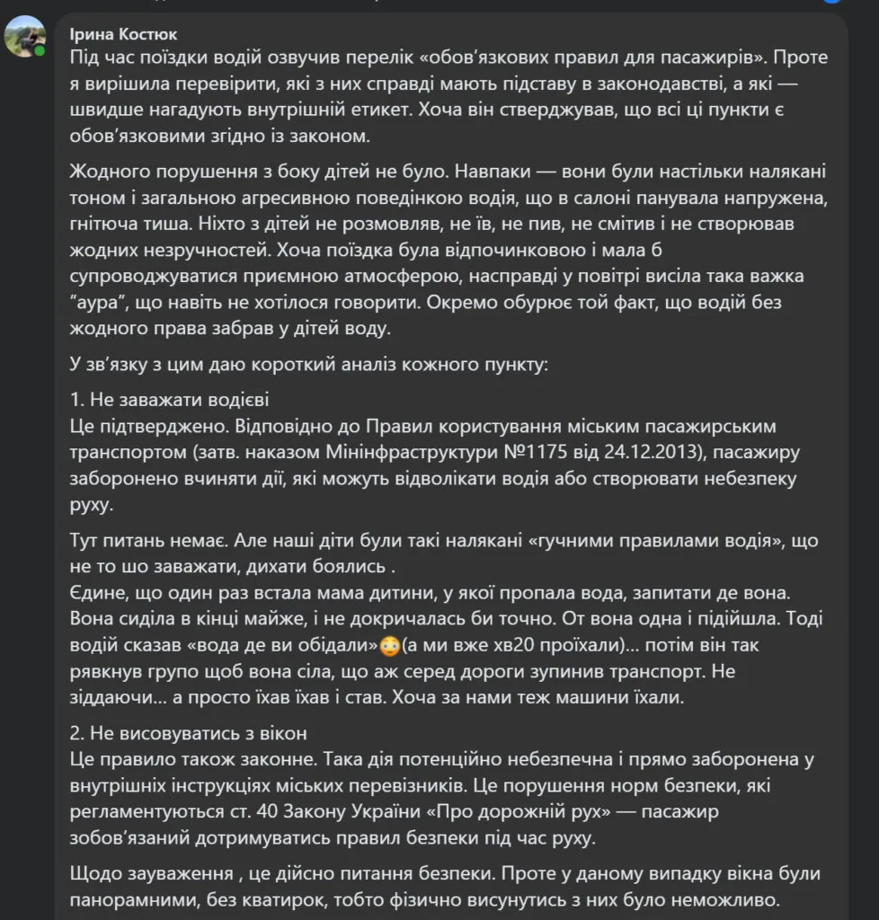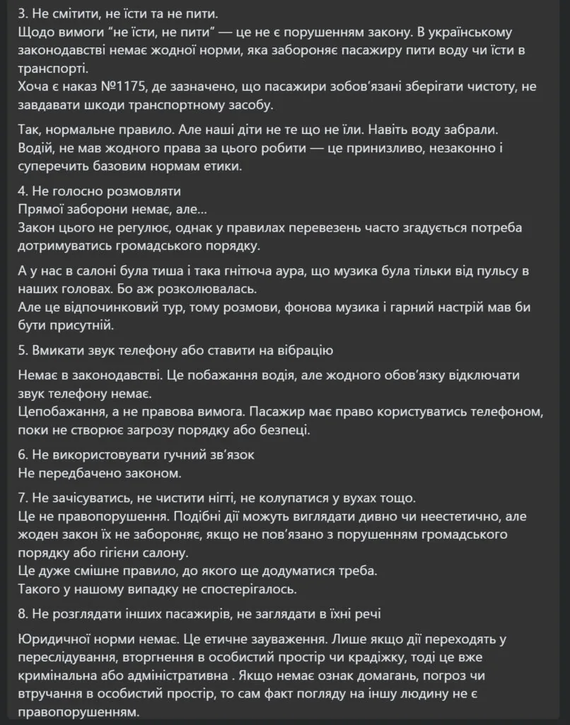 Список правил, який обурив пасажирів, не був особистою вигадкою водія, а дійсно правилами. Цей список представниця додала в дописі.