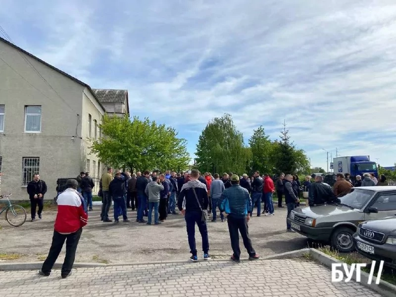Колектив шахти «Бужанська» зібрався біля державного підприємства «Волиньвугілля» у Нововолинську на мітинг проти поновлення на посаді колишнього генерального директора Юрія Ключковського, який звільнився із лав ЗСУ.
