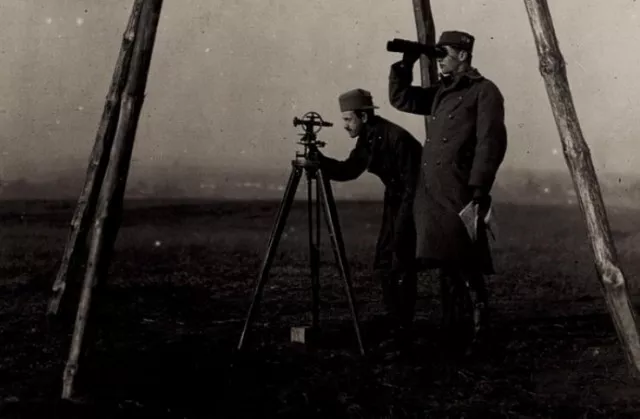«Представники австро-угорської тріангуляційної комісії на фоні садиби в селі Калусів (Гряди), 1916 р. Тріангуляційна комісія здійснювала геодезичні виміри для складання воєнних карт в роки Першої світової війни», – пояснив історик Юрій Велінець.