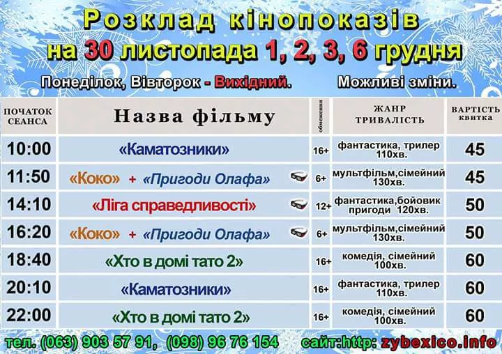 Прем’єри нових фільмів. До вашої уваги розклад кінопоказів.
