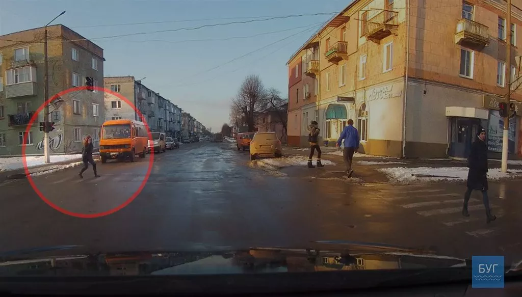 На адресу інтернет-видання “БУГ” небайдужі учасники дорожнього руху надіслали відео, на якому видно як дівчина на “червоне” переходить дорогу, при цьому розмовляє по телефону.