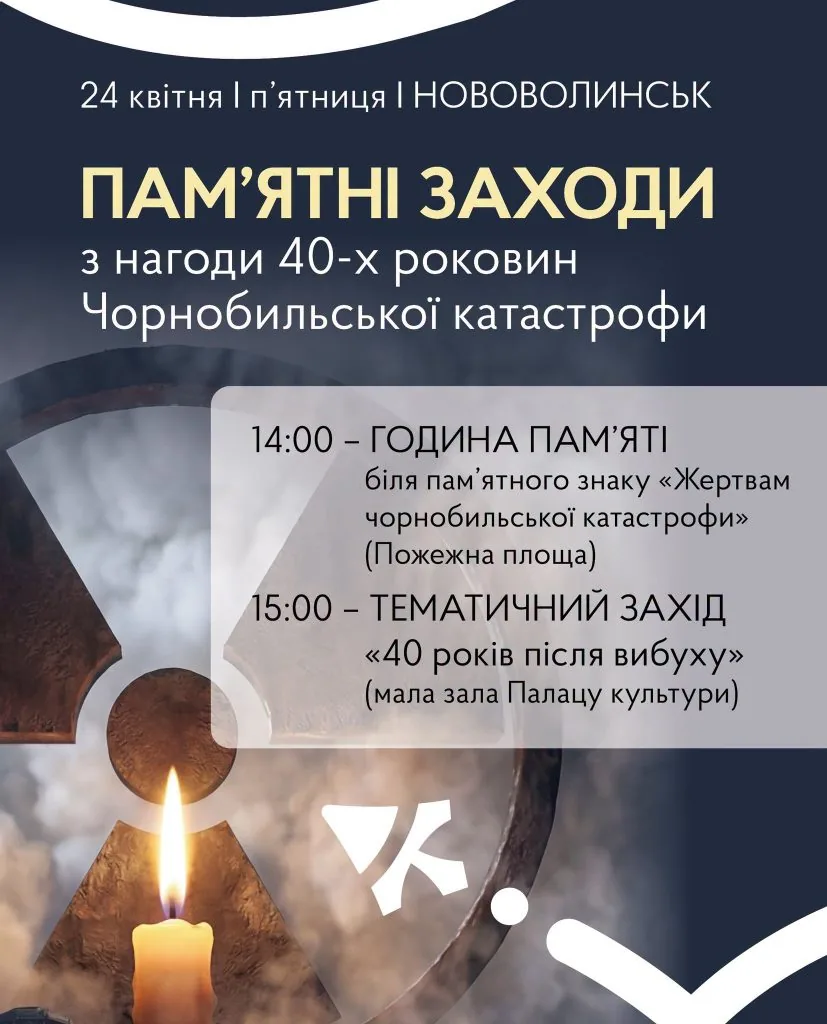 До 40-х роковин Чорнобильської катастрофи у Нововолинську відбудуться пам’ятні заходи