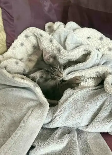 Фото дня: сліпе кошеня, яке знайшла жінка-переселенка, у пошуку родини