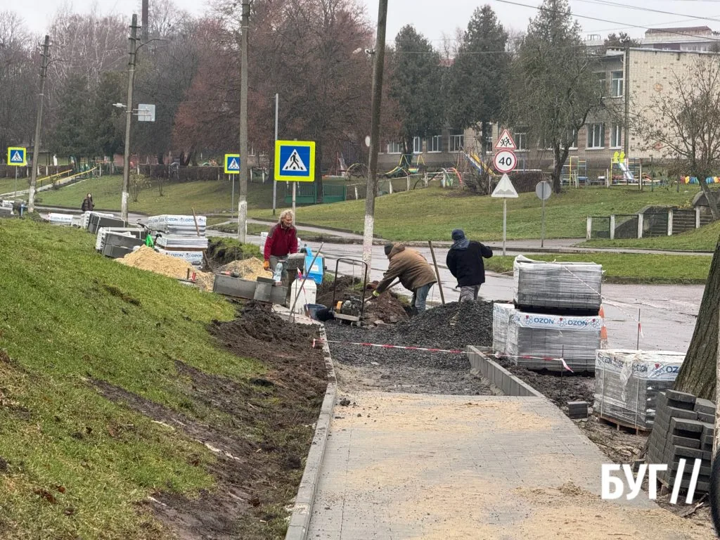 Частину тротуару вже викладено бруківкою, інші відрізки ще перебувають у підготовці. Робота просувається поетапно, незважаючи на вологу погоду. Ремонт триває на ділянці від вулиці Кауркової — зони біля озера, у напрямку до будинку №39 на мікрорайоні Шахтарському біля зупинки поруч із 7-ю школою. Після завершення ця доріжка стане зручнішою та безпечнішою для пішоходів.