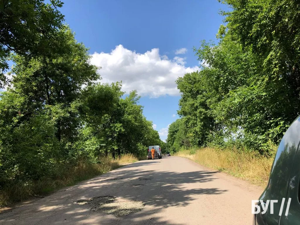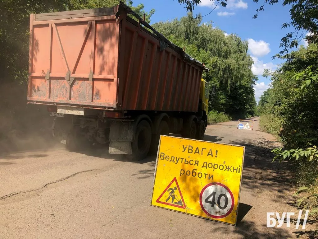 До слова, вантажівки продовжують курсувати до шахти. А ремонт дійсно триває. На відрізках дороги, перед селом Бужанка, латають клаптики дороги. Великі вибоїни вирізали та заповнюють асфальтом.