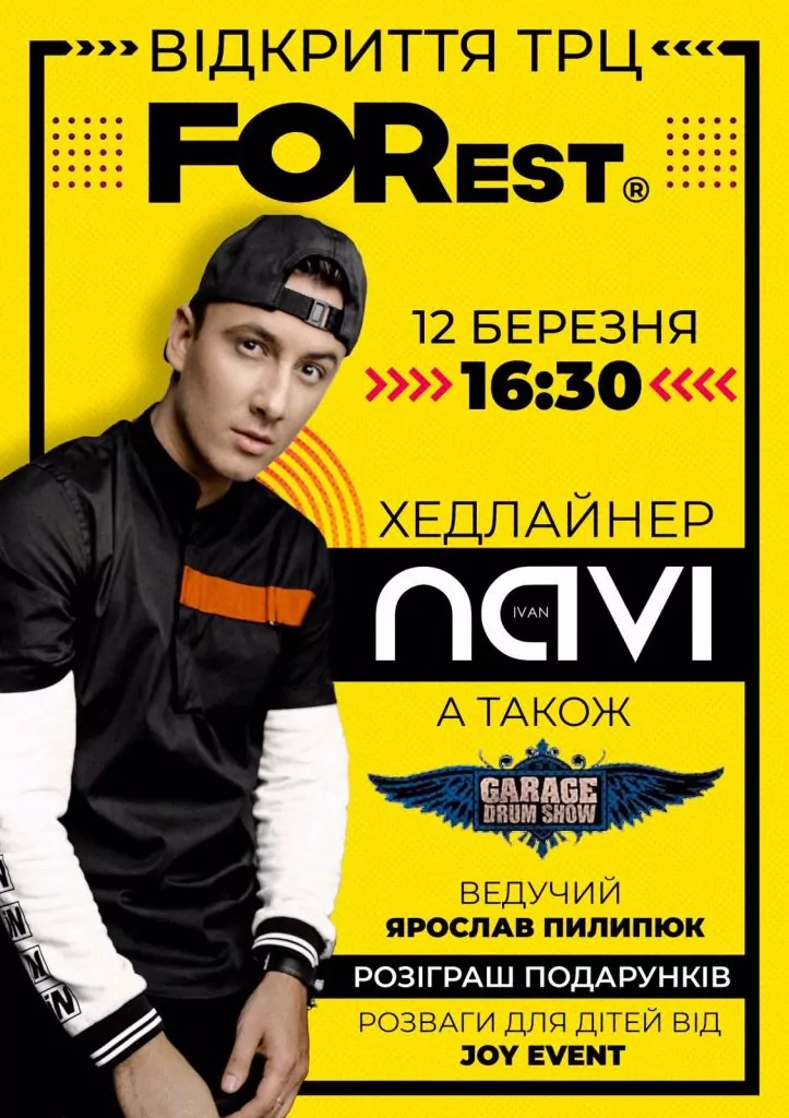 У четвер, 12-го березня, в Нововолинську відчиниться торгівельно-розважальний центр «FORest» на бульварі Шевченка, 23. Присутніх чекає цікава розважальна програма, хедлайнером заходу стане український співак Ivan NAVI.