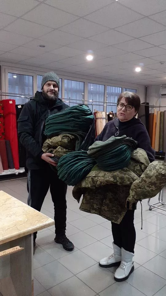 За зібрані кошти пані Марія на початку зими купила 35 бушлатів для Захисників. Регулярно купує тканину та разом зі знайомими шиють фліски й балаклави.