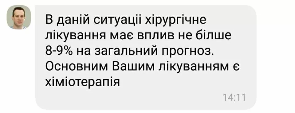 “Основне лікування – хіміотерапія, а в моєму випадку таргет, поки діє. Операції лапароскопічні, абляції, на які я так мала багато надій, робити не буду, немає сенсу просто! Вся надія тільки на таргет “Ібранс” і Бога”, – йдеться у дописі.