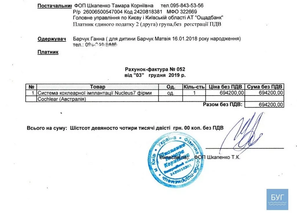 Фахівці радять якнайшвидше зробити операцію зі встановлення імпланта, поки дитина маленька та розвивається. Вартість кохлеарної імплантації на одне вушко 694 200 гривень. Після публікації новини на сайті БУГу вдалось зібрати 38 тисяч гривень. Батьки вдячні небайдужим людям.