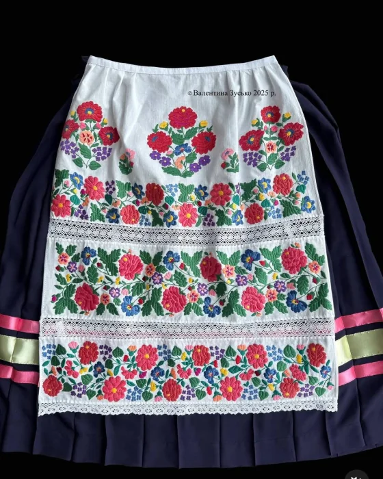 Першою відтвореною деталлю стала сорочка, за три місяці майстриня встигла повністю її вишити й зібрати вручну, без машинки. Потім була хустка, яку виготовила за два тижні. А справжнім викликом став фартух.