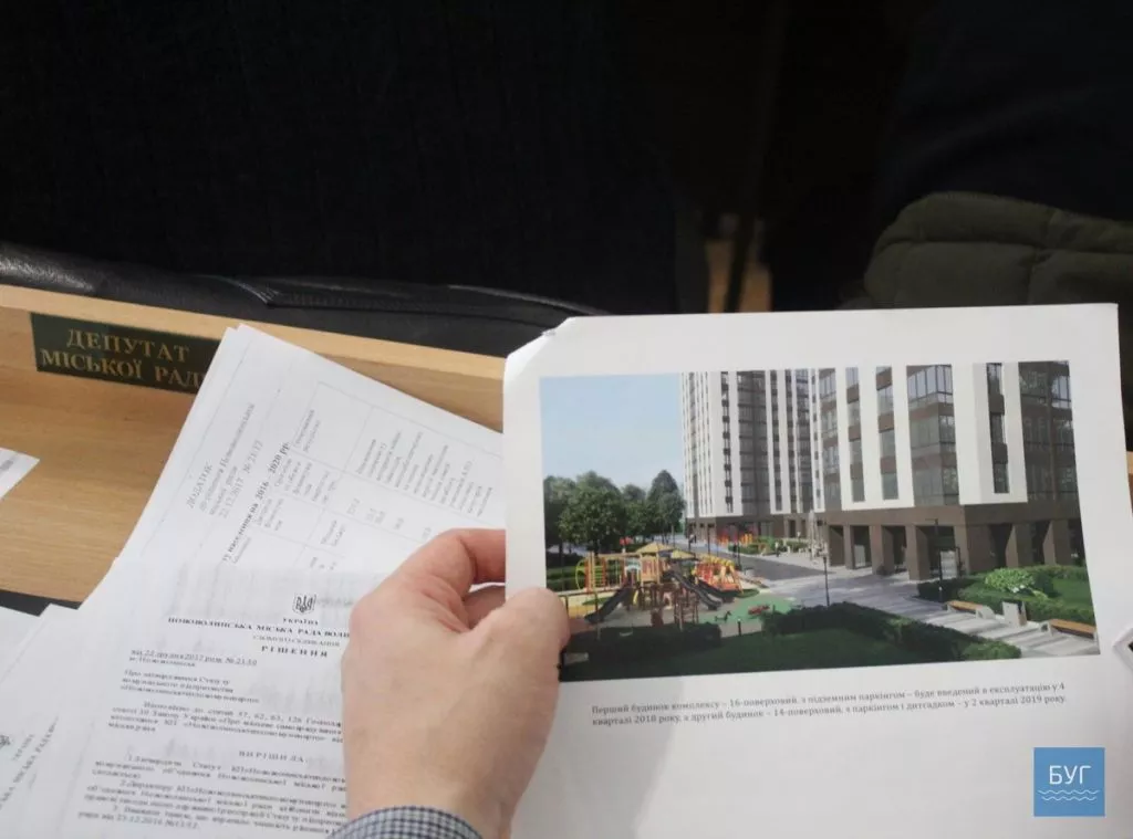 На одній із минулих сесій депутатам був наданий ескіз від потенційного забудовника, на якому показані житлові комплекси, які він зводив у інших містах.