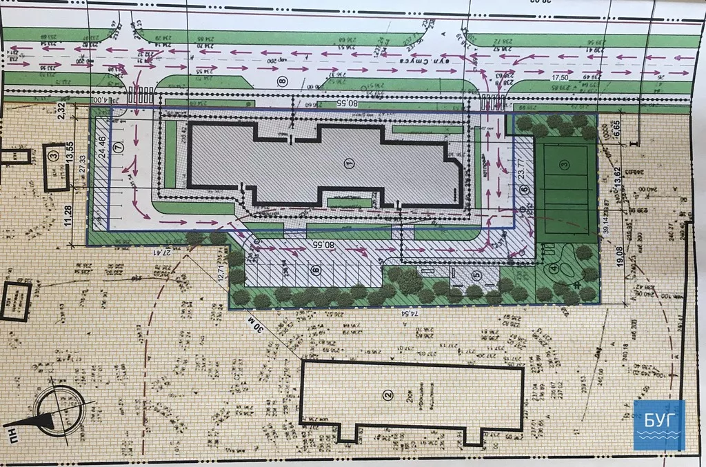 Поряд з недобудованою поліклінікою розташоване пологове відділення лікарні, навпроти – інфекційне та психоневрологічне. На детальному плані території позначили, що до будинку буде відстань 30 метрів. Вісьтак зауважив, що це відповідає державним будівельним нормам.