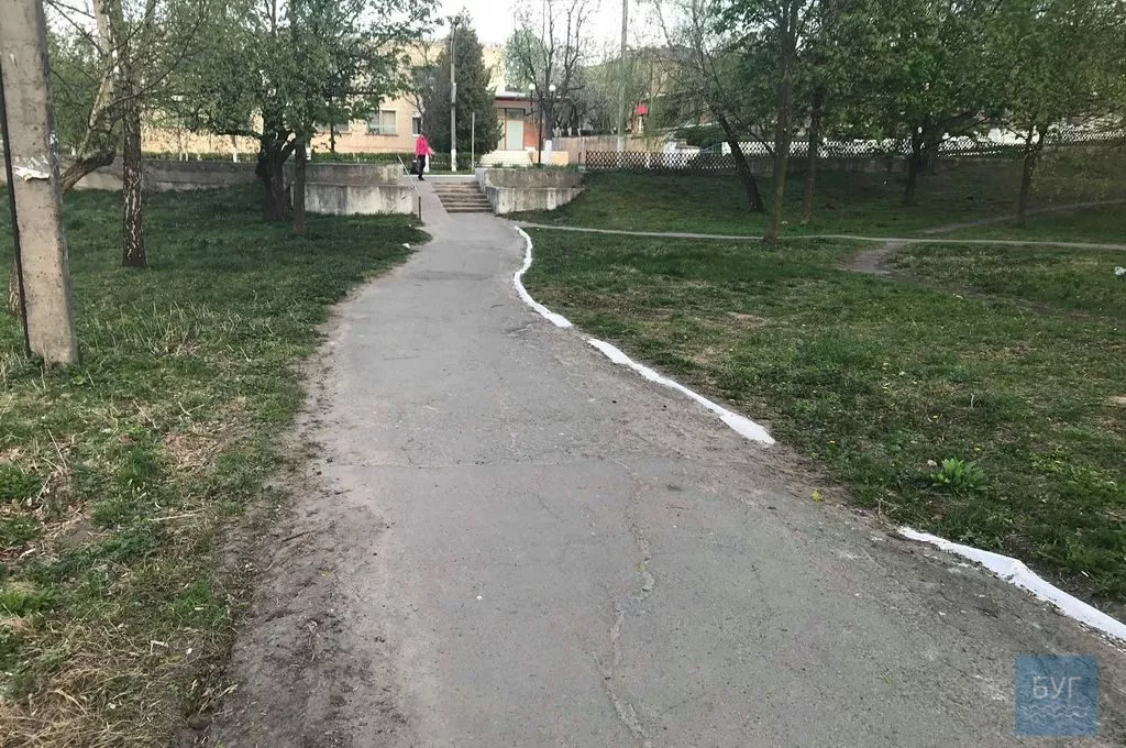 В парку жахів нанесли білу суміш на залишки бордюр щоб в вечері з переляку люди мали напрямок куди втікати.