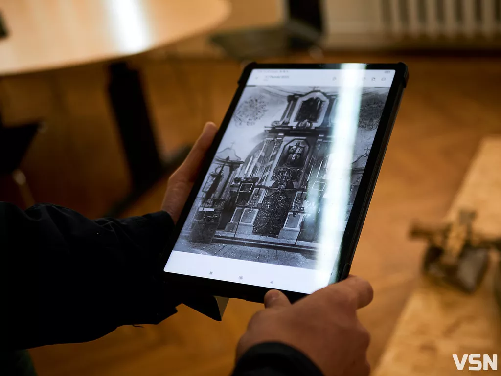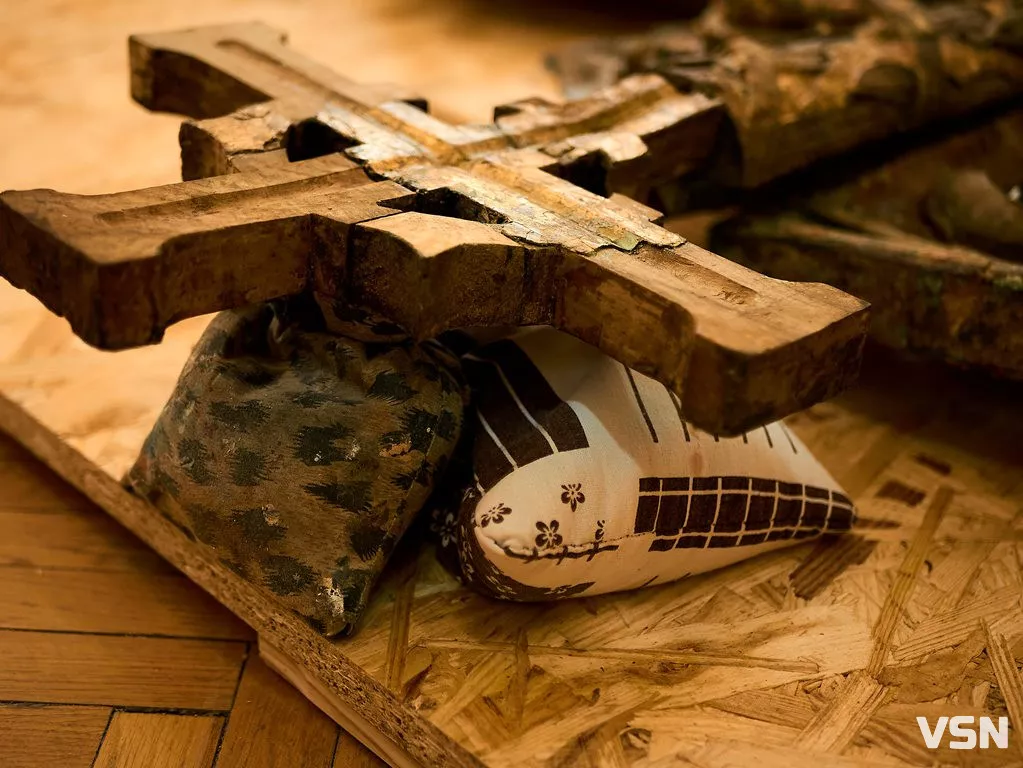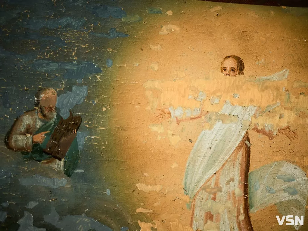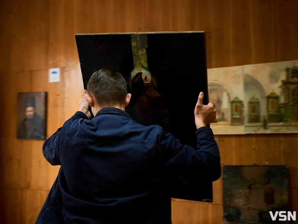 Нас зустрічає історик із Нововолинська Юрій Велінець. І найперше показує в цій залі стіл реставратора Артема Погрібного. Пензлі, фарби, скальпелі, пляшки з розчинами… На одній із них напис: “Дощова вода”. Той повертає навколишнім селам їхні мало не втрачені раритети, а сам у це місто приїхав аж з Харкова після перших бомбардувань, пише ВСН.