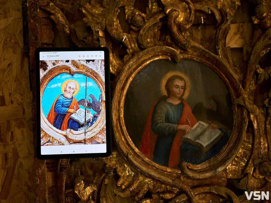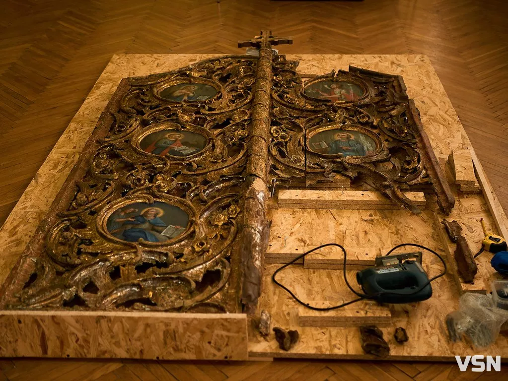 … «Царські ворота, які ви бачите, були зняті з іконостасу в Низкиничах. Одні люди кажуть, що лежали у дзвіниці при в’їзді. Інші – що в одному з підземель храму, де стояла вода, тому вони ввібрали в себе багато вологи. Реставратор працює над ними більше року, насичує чи кожен сантиметр клеєм. Медальйони на цих воротах були перемальовані в 60-х роках 19 століття. Ми відкрили те, що було у 18-му. Євангеліст у 18 столітті – юнак, а в 60-х роках 19-го – старець. Зовсім інакше і примітивніше».