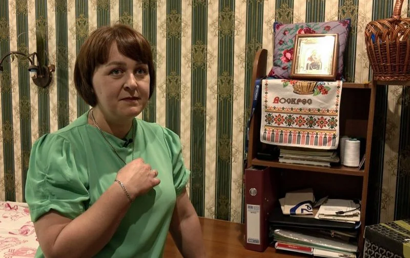 “Нашого дому вже немає, — говорить жінка. — Коли виїжджали під час повномасштабного вторгнення забрали лише деякі речі, ікону, яка була у нас у квартирі і подушку, вишиту власними руками”.