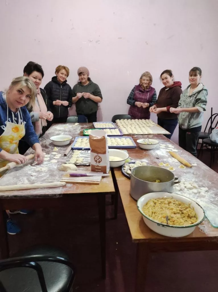 До волонтерства долучилися не лише діячі культури, а й жителі невеликого селища. Попри складну ситуацію, кожен намагався допомогти чим міг: діти плели сітки та дружно співали гімн України, молоді люди брали активу участь у приготуванні їжі, старше покоління докладало зусиль до розподілу гуманітарної продукції. Саме там розпочали свою волонтерську діяльність і господиньки з благодійної кухні.