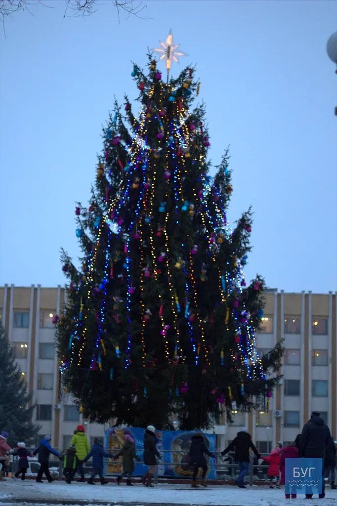 У кінці грудня 2015-го року зима у Нововолинську мала сонячний, весняний настрій. Про Новорічні свята тоді нагадували тільки гірлянди на вітринах та ялинка в центрі міста. У День Святого Миколая відбулося її урочисте відкриття. На святкове дійство завітали представники влади й сам Святий Миколай зі своєю помічницею Зимою та білосніжними ангелами. Прикрасили ялинку, як і попереднього, року синьо-жовті іграшки. На верхівці тільки з’явилась нова зірка.