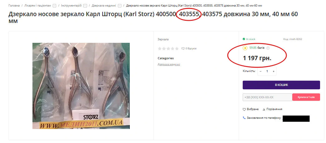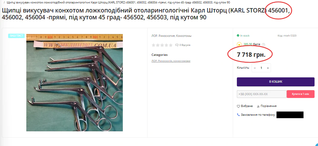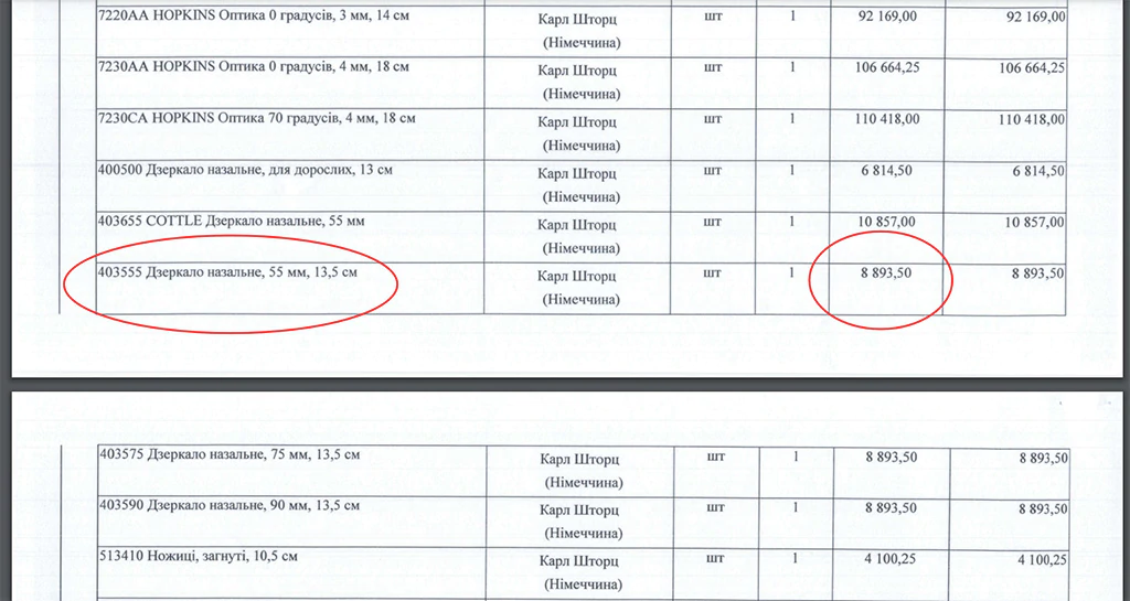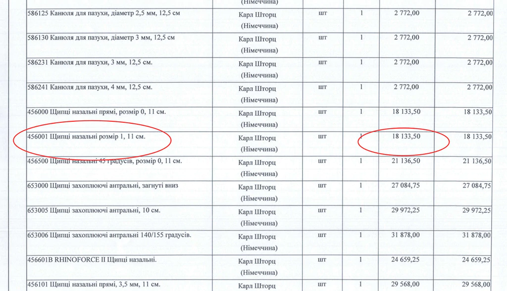 Щипці назальні цього ж бренду в інтернет-магазині продаються за майже вісім тисяч гривень, Нововолинська лікарня заплатить за них понад 18 тисяч за одиницю.