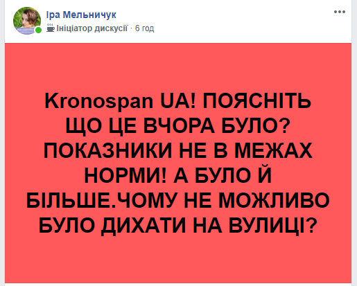 «Кроноспан УА» на своїй сторінці в фейсбуці після скарг нововолинців залишив допис про проведення перевірки обладнання на підприємстві.