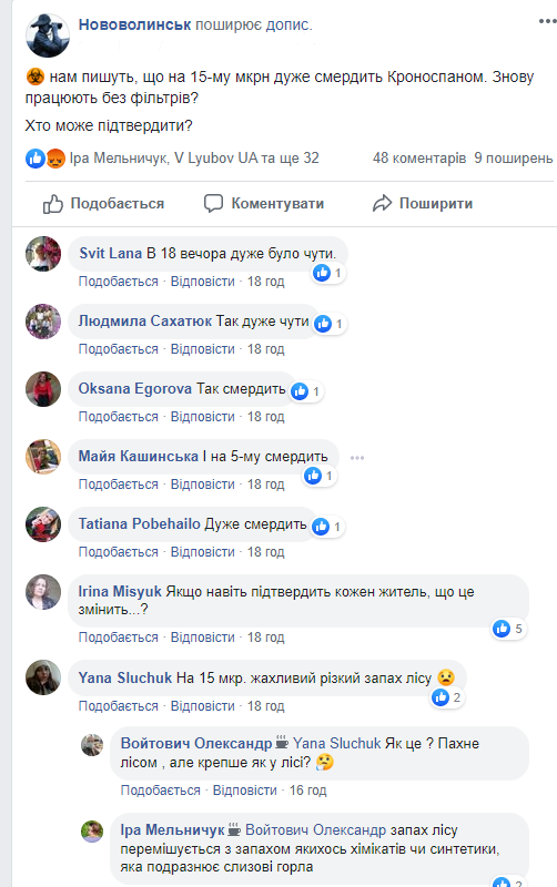 Люди писали про нестерпний запах, який було чутно не лише поблизу 15-го мікрорайону, а й в різних районах міста та інших населених пунктах, наближених до Нововолинська.