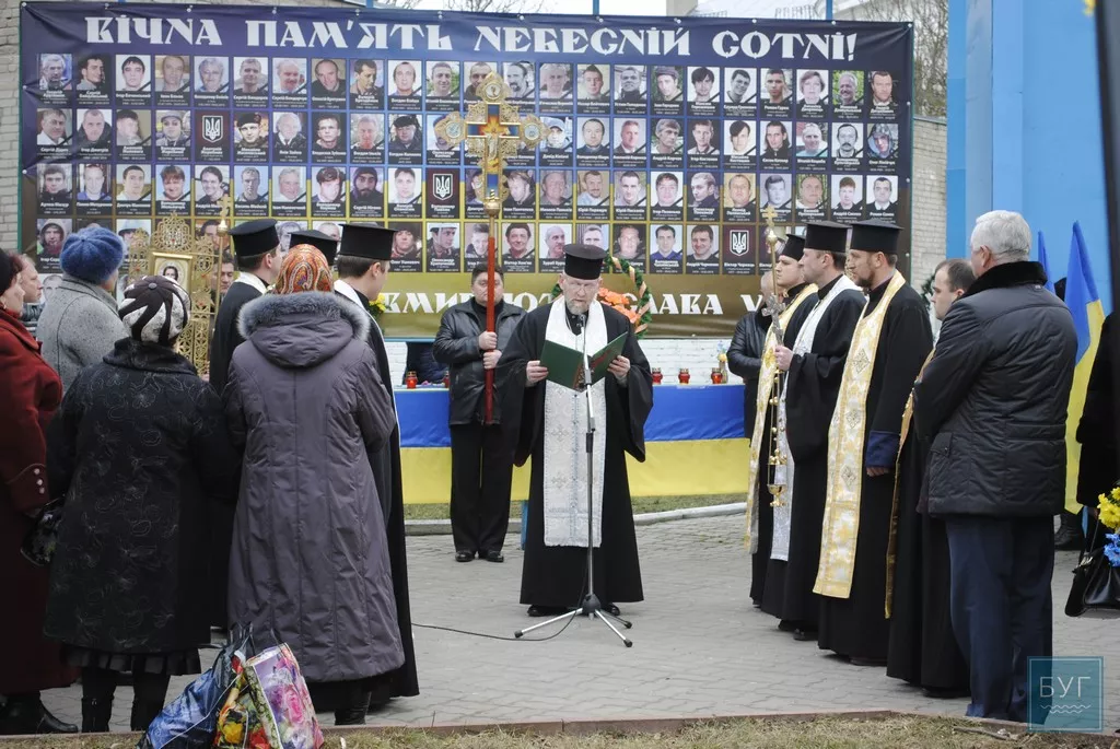Біля стели Героям Небесної сотні відбувся молебень за участі священнослужителів Української православної церкви Київського патріархату. Під час акції не обмежилися лише виступами представників духовенства. Присутні поклали квіти до стели Героїв.