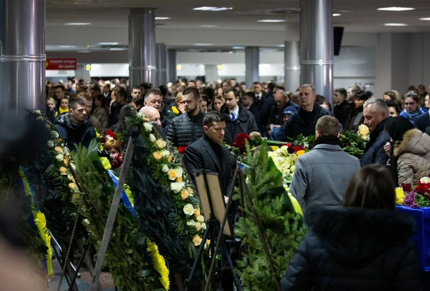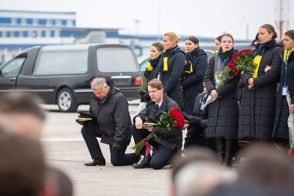 19-го січня в терміналі В аеропорту Бориспіль попрощалися з екіпажем та пасажирами рейсу Тегеран-Київ. Тіла загиблих привезли близько 11:00. Це був їхній останній політ.