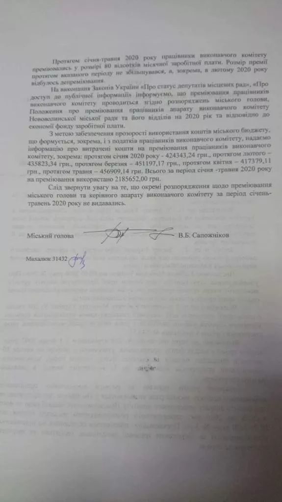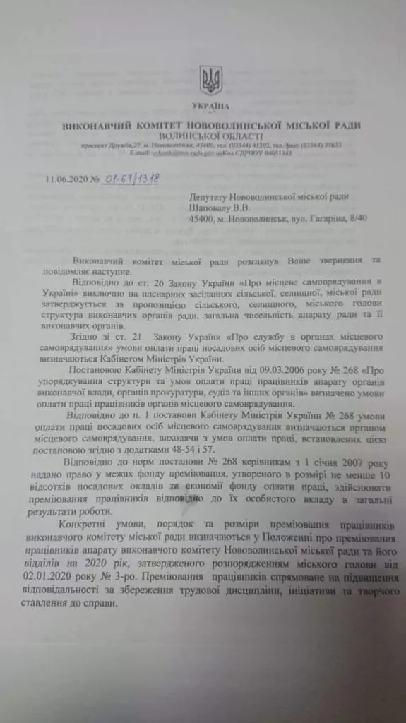 В той час, коли у світі триває пандемія коронавірусу і багато людей залишилися без доходу, працівникам виконавчого комітету Нововолинської міської ради продовжували виплачувати премії.