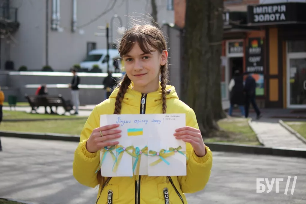 На вулицях Нововолинська школярка дарувала патріотичні прикраси