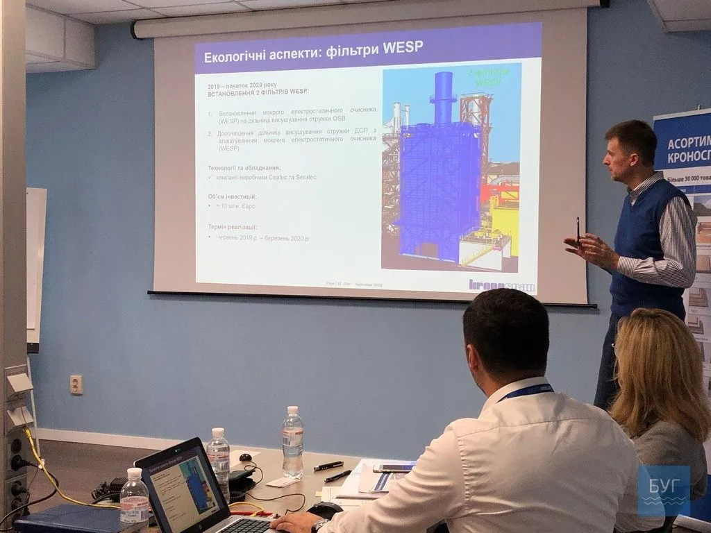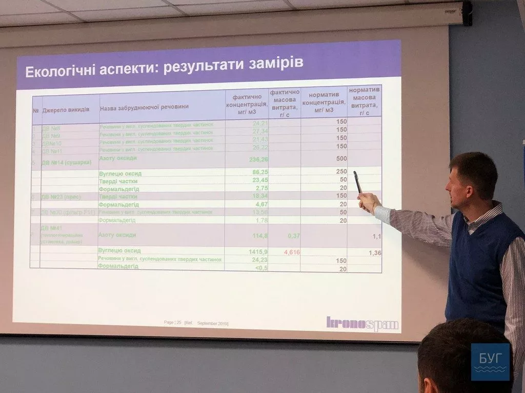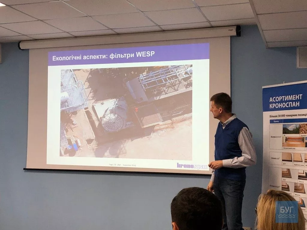“Крок вперед. Кроноспан діє на території Україні, але ми є світовим виробником. Євросоюз вимагає встановлення нових сучасних фільтрів, тому вони будуть. Хоч зараз діяльність відповідає українським нормам і ми перші, хто будемо мати такі очисні споруди в Україні”, – зазначив технічний директор.