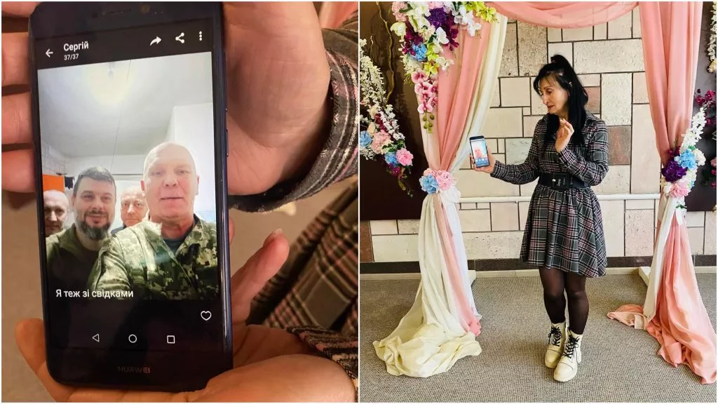 Варто зазначити, що й молодята не були у традиційному вбранні для весілля. Джинсова куртка та куртка-косуха, погодьтесь, не зовсім звичайний одяг для весілля.