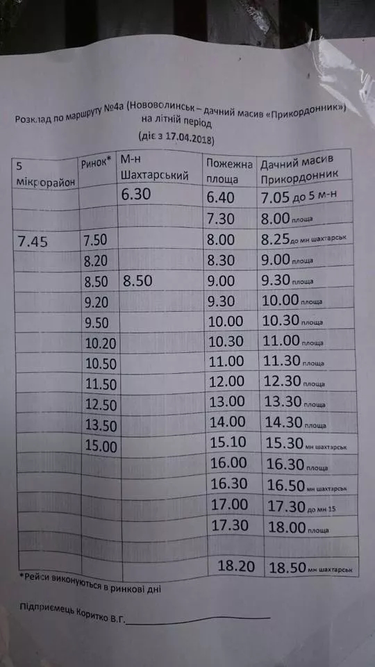 Розклад руху пільгового автобусу до дачного масиву “Прикордонник”