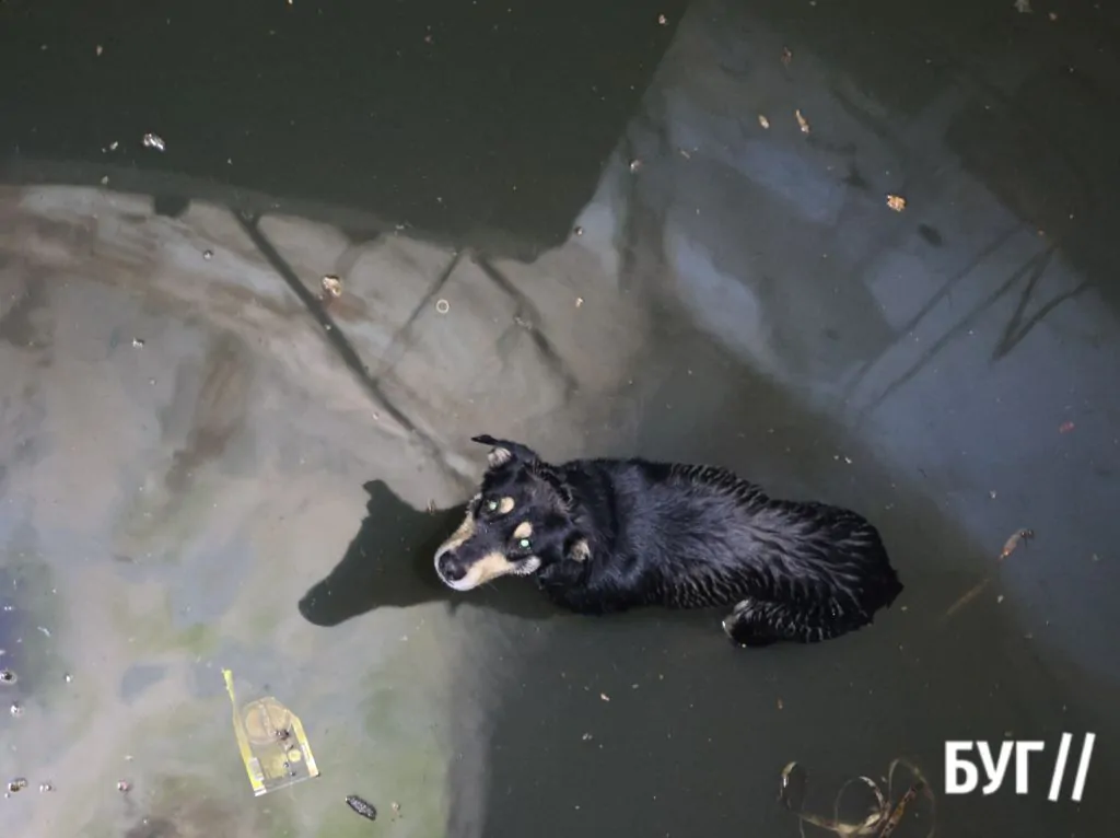 Пес не міг самостійно вибратись з води. Рятувальники за допомогою петльової палки дістали тварину на поверхню.