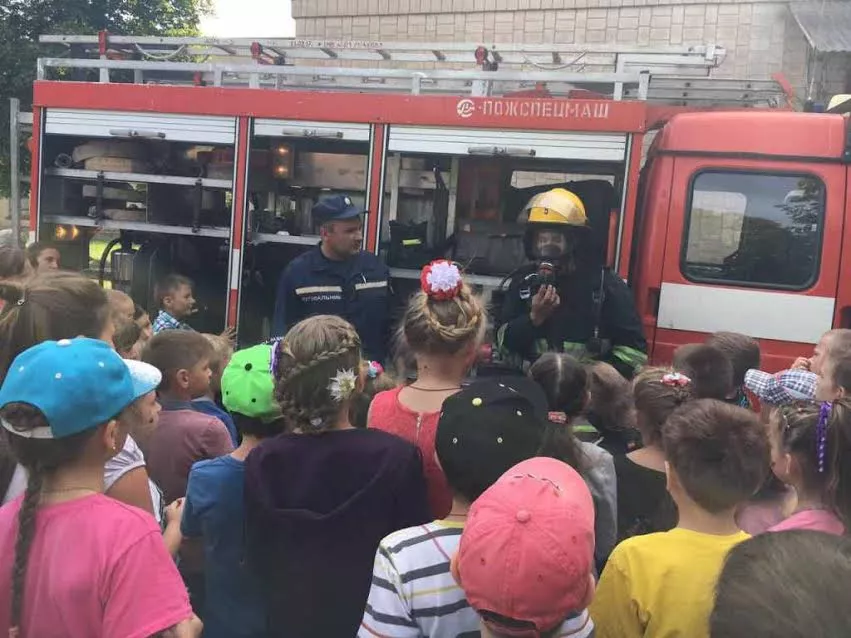 Дітей ознайомили із пожежно-рятувальною технікою, демонструючи спорядження спецавтомобіля; продемонстрували бойове екіпірування пожежника; розповіли, якими засобами користуються рятувальники під час ліквідації різних надзвичайних ситуацій. Коли малечі запропонували відчути себе у ролі рятувальника, охочих виявилось чимало. Дітлахи по черзі та із захопленням приміряли бойовий одяг й захисний шолом, спробували загасити умовну пожежу зі справжнього пожежного ствола, могли взяти до рук та розглянути спеціальні рятувальні інструменти.