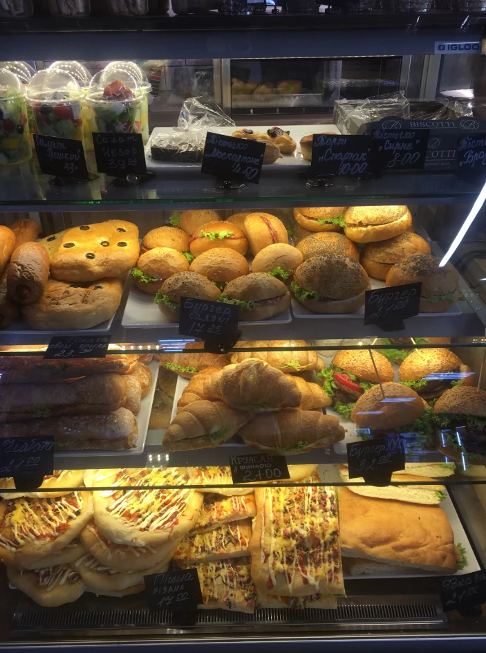 Для любителів швидкого перекусу – щойно випечена апетитна піцца, чіабата, бургери, фокачча, хот доги, круасани, смачне та натуральне брауні. Можна придбати навіть різні види супів, картопляне пюре та гарячу локшину.