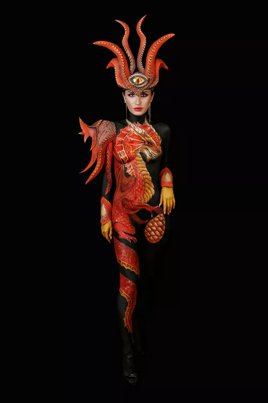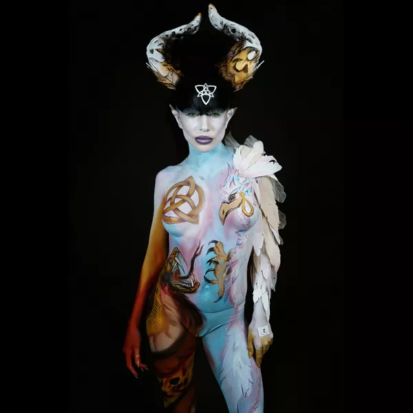 По тілу малює аквагримом і художніми пензлями. І навчилася робити бутафорію і прикраси, тому що не могла знайти того, що підійде для образу.