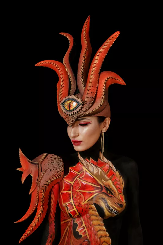 “Просто пішла на ринок біля дому, купила скальпель, паяльник, спреї з фарбою і почала читати, як цим користуватися. Для мене бодіарт – це щось чарівне, і в ньому присутня краплинка дитячих фантазій, уяви, і гармонії мене з творчістю”.